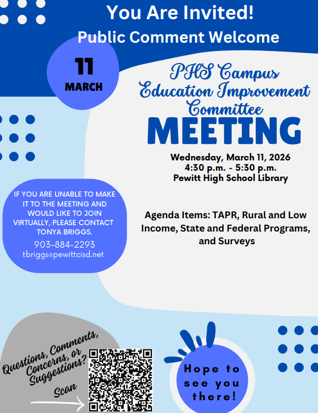 Afterschool Centers on Education! Don't miss out on the fun at ACE...Join today...Grades PK-8th are welcome! Contact Tanetra Blaylock, Ace Site Coordinator for more information. Phone: 430-901-7190 Email: tblaylock@pewittcisd.net